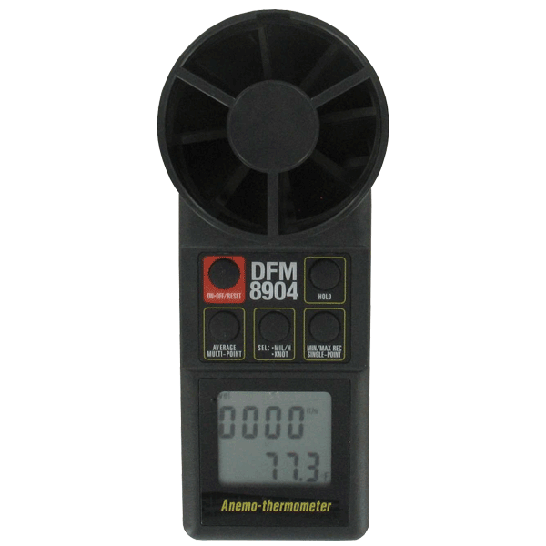 用8904型整體葉片式熱風速計同時測量風速和溫度。1.3英寸(34mm)大顯示屏允許用戶方便地查看讀數。用戶可選擇的風速單位包括英尺/分鐘,米/秒,節,英里/小時和公里/小時。此外,內置傳感器記錄環境溫度在°F或°C。型號8904的功能包括數據保持,記錄最小,最大和平均讀數的能力在一個單點和RS-232接口設置。該設備還可以記錄和平均高達2小時的數據,同時顯示連續運行平均。8904型包括硬手提箱、電池和使用說明書。這種緊湊的儀表是理想的暖通空調檢查,能源審計和平衡應用。
