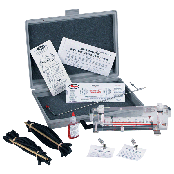傾斜式差壓計(jì),不銹鋼皮托管(102AV和115AV帶有12"的皮托管,125AV帶有24"皮托管),兩根9英尺長的橡皮管帶接頭,紅油,安裝說明卡,說明書,磁性卡件,風(fēng)速計(jì)算尺和便攜箱(102和115是塑料便攜箱,125是金屬便攜箱)。