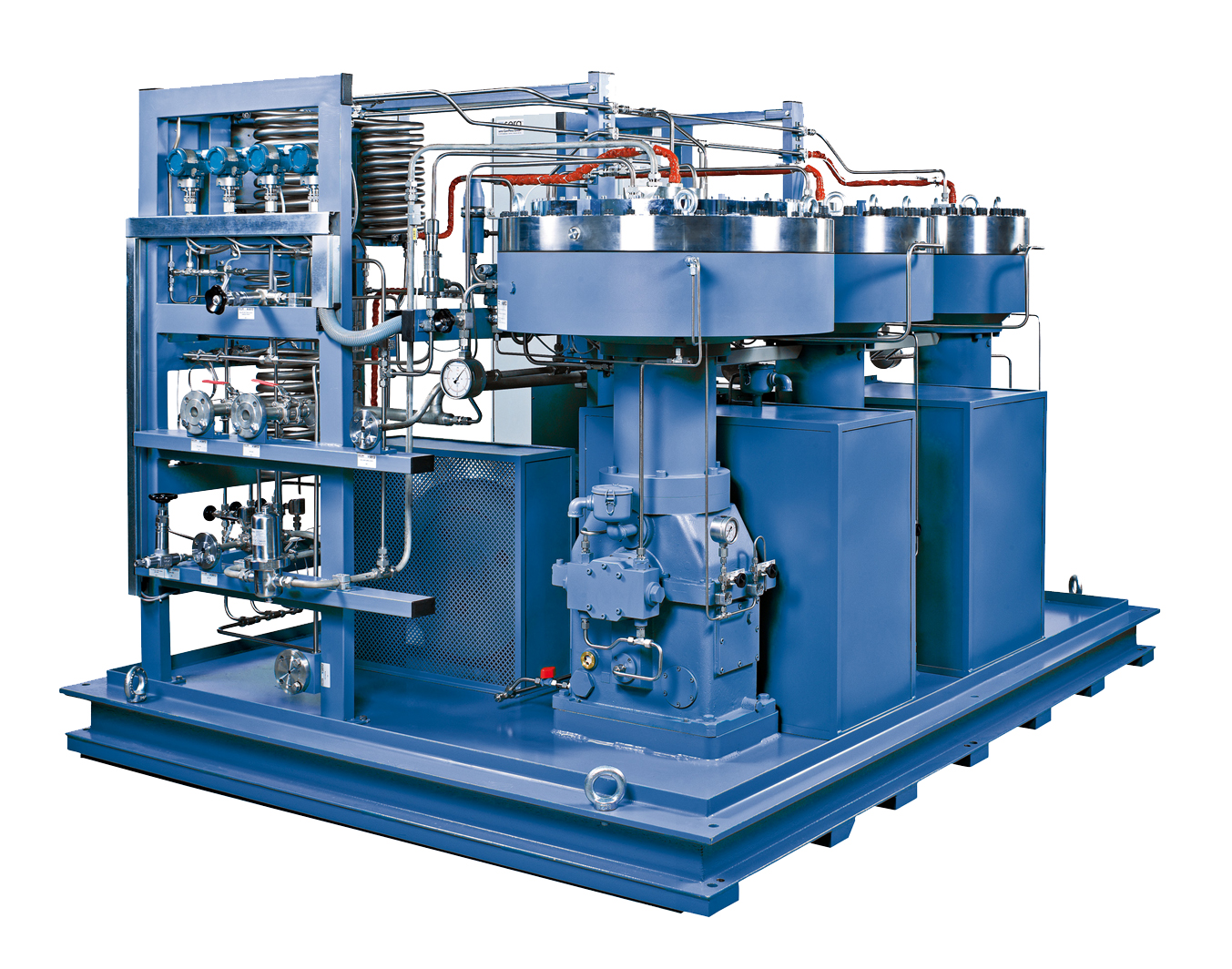 先進的壓縮機,低噪音設計,用于無污染、無泄漏的氣體壓縮過程。特別適合于具有高純度、易燃、易爆、腐蝕性、放射性、惰性、有毒的等氣體的輸送、循環和增壓。可用在一般區域或Zone1和Zone2及外部有潛在爆炸性的區域。提供基本型到完備型的壓縮機系統。3-級壓縮機,立式設計 入口壓力: Min. 1 Bar (A) 出口壓力: Max. 500 Bar (A) 壓縮比達15 (根據不同的氣體特征)壓縮介質:氫氣、氧氣、氮氣、乙烯、丙烯、甲烷、乙烷、惰性氣體、醫用氣體、氟氣、氯氣、一氧化碳/二氧化碳、六氟化硫、混合氣體、其它更多*取決于氣體的類型、入口壓力和出口壓力**取決于壓縮機的設計