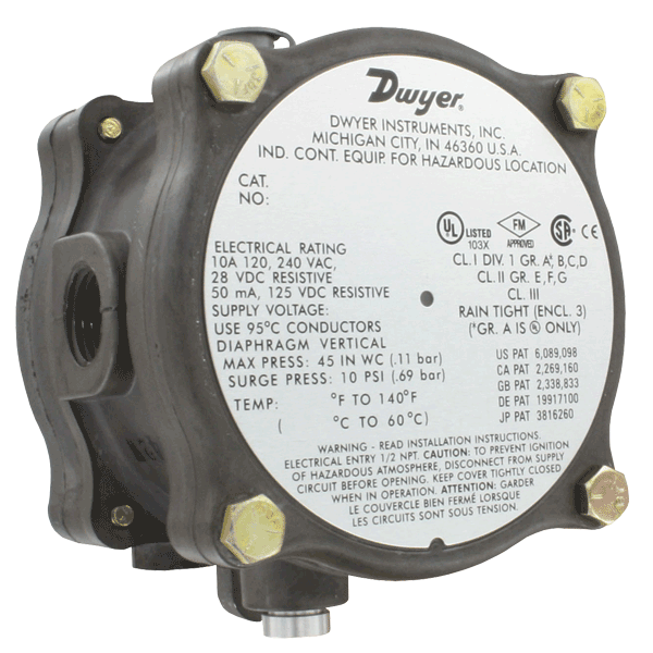 1950G系列防爆型微差壓開關具有德威爾1950系列差壓開關的所有最好性能,還可用于天然氣的監測。它可以用于室外安裝,并達到UL的防爆認證:Class I, Groups A, B, C, & D; Class II, Groups E, F, & G and Class III atmospheres, Directive 94/9/EC,還具備(ATEX) Compliant for CE ATEX II 2G Exd IIB+H T6, CSA & FM approved for Class I, Div. 1, Groups B, C, D; Class II, Div. 1, Groups E, F, G and Class III atmospheres IECEx Ex d IIB+H T6。它尺寸小,重量相當于常規防爆開關的一半。