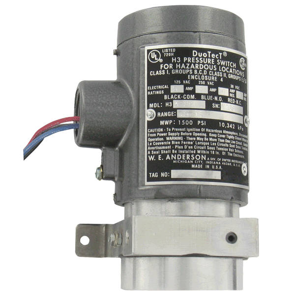 H3系列防爆式差壓開關結構牢固,可靠耐用,專利的獨特設計使其能夠靈敏地監測低到10英寸水柱(254毫米水柱)的差壓,同時承受到1500psig(103bar)的靜壓。它和其它活塞移動的壓力開關不一樣,H3系列采用旋轉運動移動軸來使設定點不隨全壓的變化而變化,回差大約為量程的5%。量程彈簧直接和隔膜向連結使摩擦阻力減少到最小,重復精度最佳。轉動的大隔膜設計能夠維持有效面積進一步降低摩檫力。隔膜后面有墊座,這樣不管是高壓側還是低壓側,在靜壓高到1500psi (103 bar)內都不會受到損害。特別的過量程保護功能還可以防止過度調緊量程螺絲。可選擇316不銹鋼外殼用于水,水基液體或用于其它惡劣的應用場合。