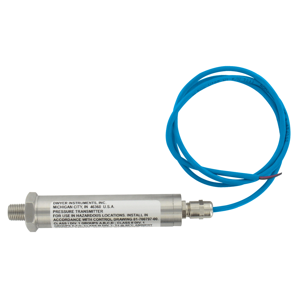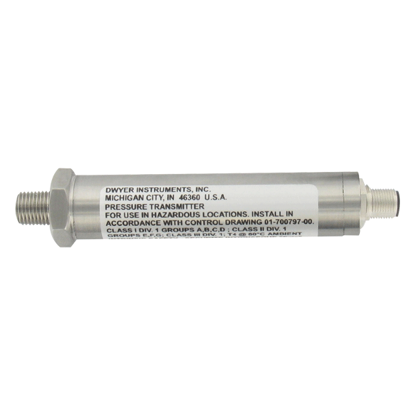 IS626-08-GH-P1-E1-S1 | Intrinsically safe pressure transmitter, 30 psi pressure range, 4-20 mA output, 1/4" NPTM, general purpose housing. |