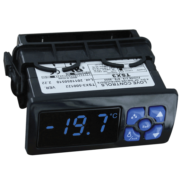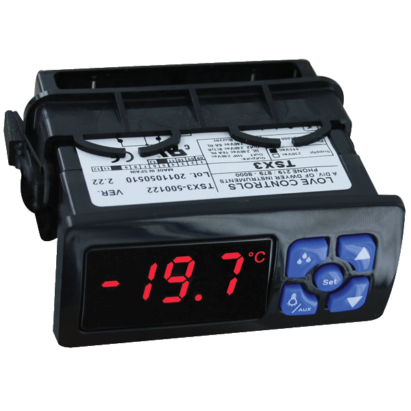 TSX3系列數字溫度開關用于控制制冷應用中的壓縮機、風機和除霜。這一代控制具有現場可選擇的工程單元和溫度探頭類型,以減少需要儲存的部件組合。內置的實時時鐘用于HACCP記錄溫度報警,溫度超出其設置的限制或失去電源。智能除霜參數對除霜周期進行管理,節約能源成本。數字輸入可以用來遠程觸發除霜周期,監控冷門狀態,或作為外部警報。對于編程多個單元,型號TS2-K配置鍵可以用來快速下載參數設置。