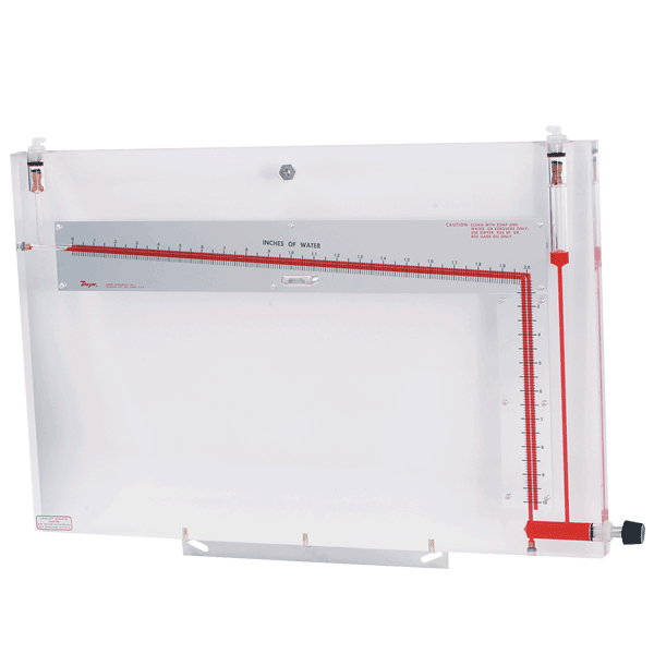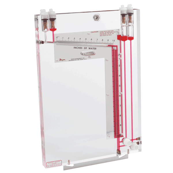 Dwyer? Series 420 Inclined-Vertical Manometer are extremely accurate instruments designed and made especially for precision measurement of low differential pressures in laboratory and test applications. The inclined range bore has a length of 20" to provide ample multiplication of indicating fluid movement in this critical lower part of the range.
