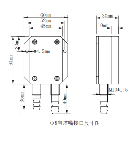 過程連接 Φ8寶塔嘴或Φ6快接頭,可定制其它類型過程接口