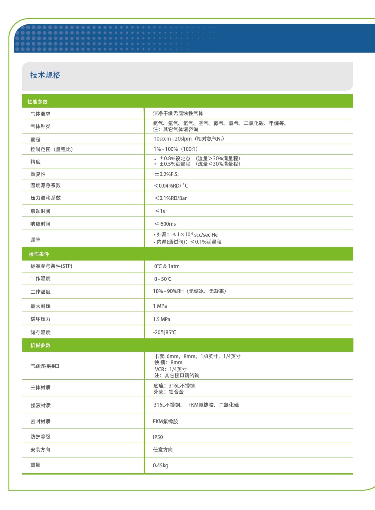 量程 10 SCCM - 20 SLPM,50-100SLPM,±0.8% 設(shè)定點(diǎn)精度,優(yōu)于 600 ms 響應(yīng)時間